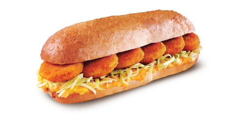 pšeničná bageta 45 %, kuřecí nugety 32 %, dresink se zelím 23 %